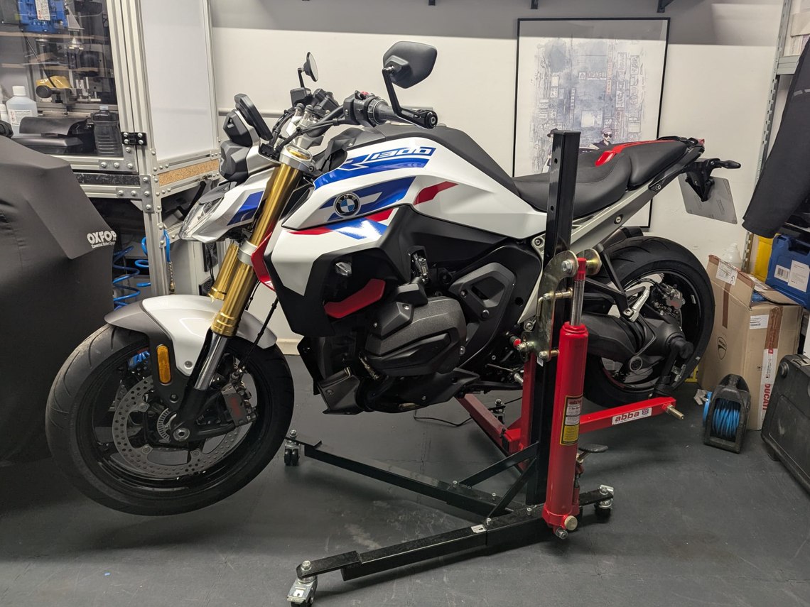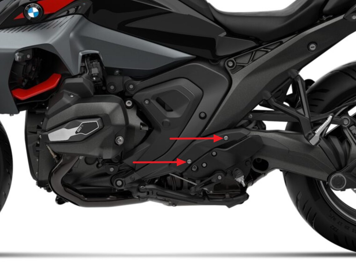 When using the abba Superbike Stand or Sky Lift on the BMW R1300R a cosmetic frame cover needs to be removed from either side of the bike to gain access to the swing arm pivot, so the abba Stand/ SkyLift can be fitted. Removing the covers is very straight forward, simply unscrew the two small screws from the covers on either side.