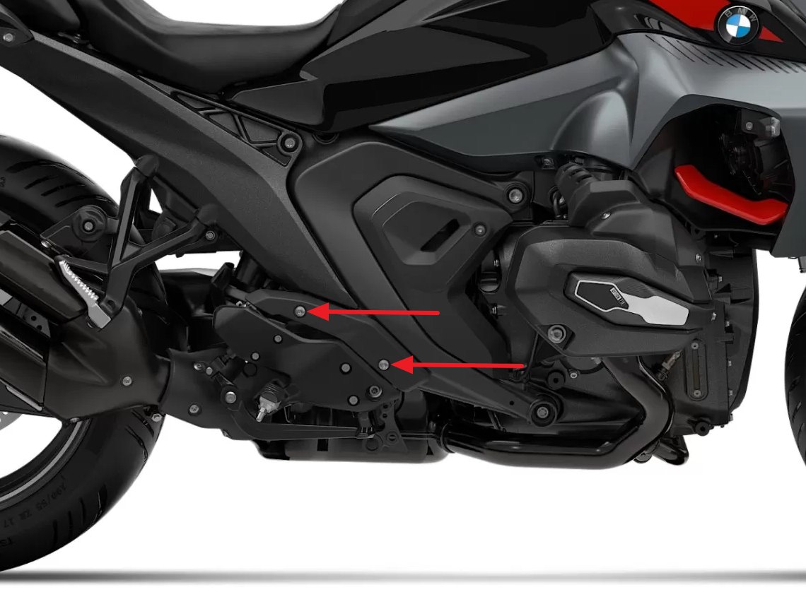 The pictures below show the cover that needs to be removed from both sides of the bike, the arrows show the screw positions.